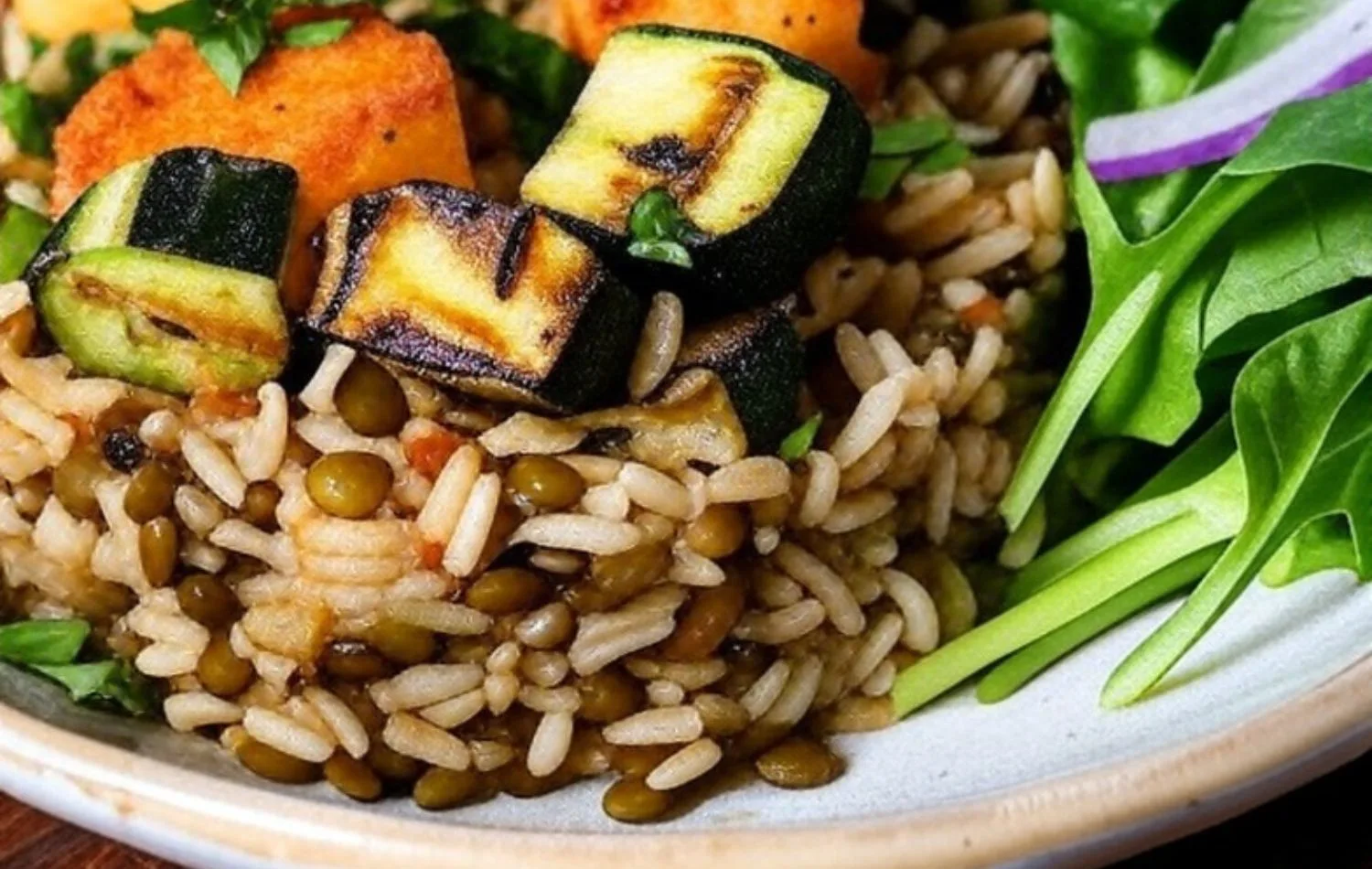 Na receita de almoço de hoje, uma versão express de baião de dois vegano, que pula horas de cozimento e preparo com o uso das lentilhas! Uma opção saudável e balanceada que ainda dá para duplicar e dividir para ajudar na praticidade das refeições.
