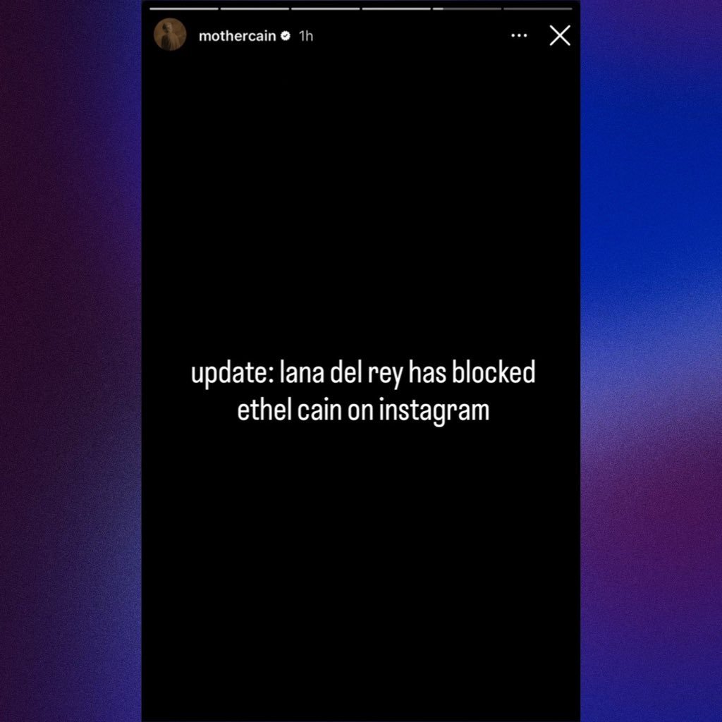 Em 13 de agosto de 2025, Lana postou um reel no Instagram com um trecho de uma música inédita (faixa 13 do seu novo álbum, produzido por Jack Antonoff). As letras dizem: “Ethel Cain hated my Instagram post / Think it’s cute reenacting my Chicago pose” (Ethel Cain odiou meu post no Instagram / Acha fofo reencenar minha pose de Chicago) e “The most famous girl in the Waffle House” (A garota mais famosa no Waffle House). Fãs imediatamente viram como um diss track (música de ataque), inspirado no filme “All About Eve” (1950), onde uma jovem ambiciosa trama contra sua ídola. O título da música seria “All About Ethel”. Ethel respondeu com um story no Instagram dizendo que Lana a bloqueou. Lana então comentou em um post do Pop Base (uma conta de fofocas pop) no Instagram, explicando: “Eu não sabia quem era Ethel até alguns anos atrás — quando alguém me mostrou as imagens perturbadoras lado a lado que ela postava de mim ao lado de criaturas e personagens de desenho animado pouco lisonjeiros, fazendo comentários constantes sobre meu peso, eu fiquei confusa com o que ela queria dizer. Depois, quando ouvi o que ela dizia pelas costas via amigos em comum e começou a se inserir na minha vida pessoal, eu fiquei definitivamente perturbada.”
