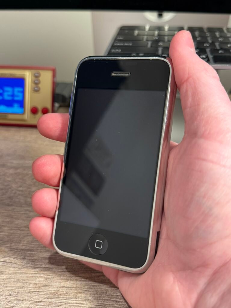 Apresentado por Steve Jobs em uma keynote memorável na Macworld Expo, o dispositivo combinava telefone, iPod e navegador de internet em um só aparelho. Na época, sua espessura de 11,6 mm era considerada impressionante para um smartphone, especialmente considerando a bateria, a tela de 3,5 polegadas e os componentes internos como o processador ARM de 412 MHz e 128 MB de RAM.